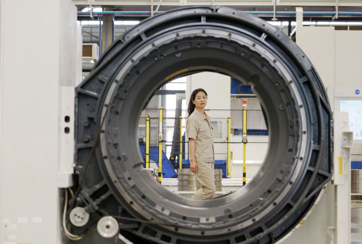 2025年5月24日,洛陽軸承集團(tuán)技術(shù)中心高端軸承項目研發(fā)團(tuán)隊成員喬淑香查看自己參與設(shè)計的醫(yī)療CT機軸承。新華社記者 李嘉南 攝