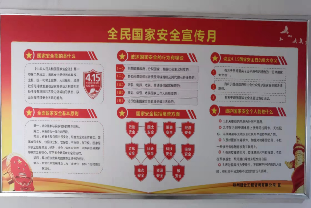 會(huì)前支部在公司公共區(qū)域設(shè)置國(guó)家安全相關(guān)展板,結(jié)合投影顯示等方式開(kāi)展普及宣傳,渲染氛圍,提升國(guó)家安全宣傳教育的影響力和傳播力。會(huì)上集中學(xué)習(xí)了習(xí)近平總書(shū)記關(guān)于國(guó)家安全的重要論述、《中華人民共和國(guó)國(guó)家安全法》、《總體國(guó)家安全觀學(xué)習(xí)綱要》重要章節(jié),集中觀看了紀(jì)錄片《從全民教育看國(guó)家安全》,最后進(jìn)行了國(guó)家安全知識(shí)測(cè)試。通過(guò)多種形式結(jié)合的系列活動(dòng),引導(dǎo)廣大黨員群眾增強(qiáng)國(guó)家安全意識(shí),堅(jiān)定不移地貫徹總體國(guó)家安全觀。